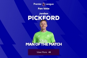 皮克福德此役做出5次扑救,6次恢复球权,英超官方宣布他当选本场比赛最佳球员。